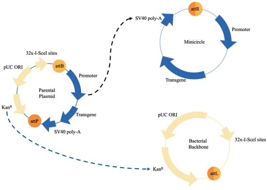 - Almeida, A.M.; Queiroz, J.A.; Sousa, F.; Sousa, Â. Minicircle DNA: The Future for DNA-Based Vectors? Trends Biotechnol. 2020, 38, 1047–1051. [Google Scholar] [CrossRef]