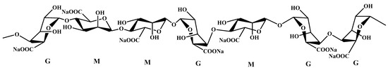 Molecular structure of sodium alginate for 1,4-β-D-mannouronic acid (M) and 1,4-α-L-gulonuronic acid (G).