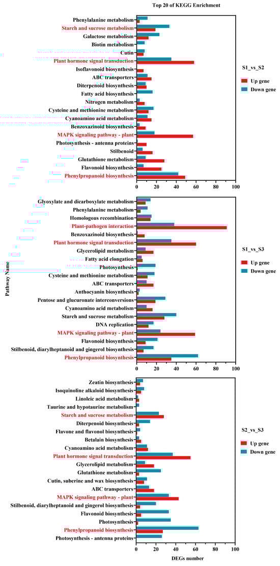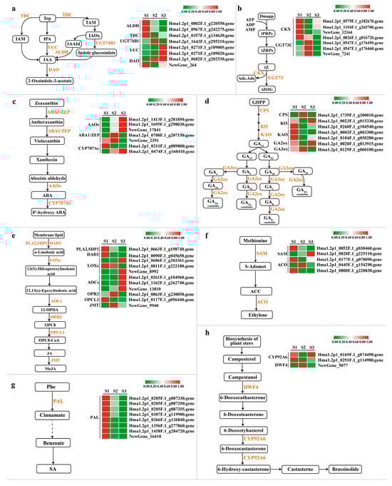 2.4. DEG Analysis of Biosynthetic Pathways and Signal Transduction Pathways of Plant Hormones