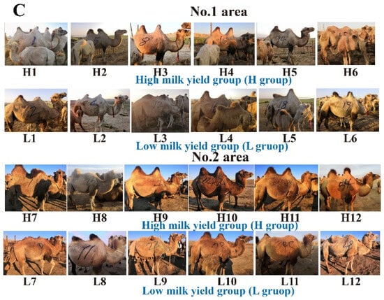 - Yao, H.; Liang, X.; Dou, Z.; Zhao, Z.; Ma, W.; Hao, Z.; Yan, H.; Wang, Y.; Wu, Z.; Chen, G.; et al. Transcriptome analysis to identify candidate genes related to mammary gland development of Bactrian camel (Camelus bactrianus). Front. Vet. Sci. 2023, 10, 1196950. [Google Scholar] [CrossRef]