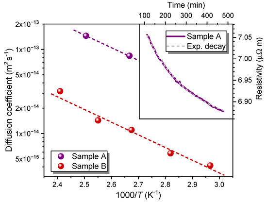 - Diosa, J.E.; Vargas, R.A.; Mellander, B.E. Oxygen diffusion in Y1−xPrxBa2Cu3O7−δ observed by resistivity measurements. J. Phys. Condens. Matter 1997, 9, 4621. [Google Scholar] [CrossRef]