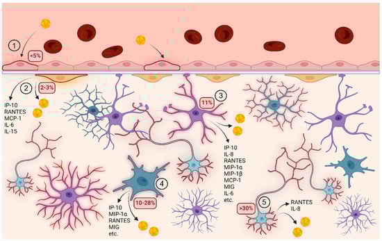 - Müller, M.; Carter, S.; Hofer, M.J.; Campbell, I.L. Review: The Chemokine Receptor CXCR3 and Its Ligands CXCL9, CXCL10 and CXCL11 in Neuroimmunity—A Tale of Conflict and Conundrum: CXCR3 and Its Ligands in CNS Inflammation. Neuropathol. Appl. Neurobiol. 2010, 36, 368–387. [Google Scholar] [CrossRef] [PubMed]
