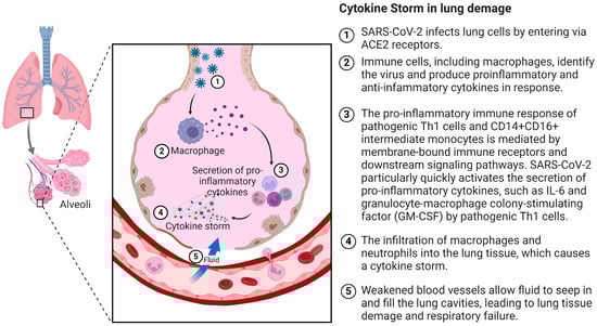 The human immune system consists of effector cells that produce cytokines (interleukins, chemokines, interferons, and others). These cytokines play an important role in the immune response. Their anti-inflammatory and pro-inflammatory effects depend on many complex regulatory mechanisms. When this balance is broken, or homeostasis is disturbed, a cascade of complex chemical reactions may be triggered, resulting in the massive release of pro-inflammatory cytokines []. This so-called cytokine storm, further intensifying feedback mechanisms, can cause systemic damage and, in extreme cases, multi-organ failure, leading to patient death []. Although factors initiating these responses include autoimmune diseases, it has been noted that pathogens such as SARS-CoV-2 (Severe Acute Respiratory Syndrome Coronavirus-2) have played a primary role in recent years [,].