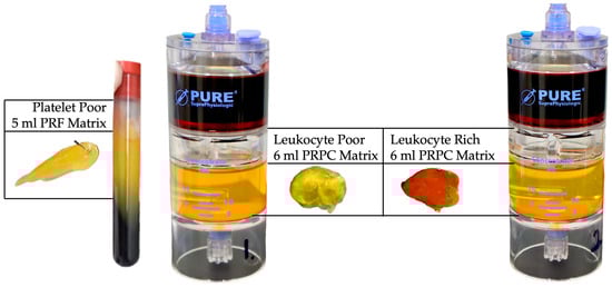 There are three main variables in a simplified classification system, namely, platelets, leukocytes, and plasma proteins [15]. In terms of these biological variables, PRP can be classified into four general categories [21]. A number of variables differentiate PRP devices, including the volume of processed whole blood; the device platelet capture rate, which influences the platelet concentration; and the prepared PRP volume. In addition, the presence and concentration of leukocytes is an underestimated factor in PRP treatment outcomes. Accordingly, the literature denotes poor patient outcomes when PRP devices with low platelet numbers and inconsistent other cellular content were used [22,23,24,25].