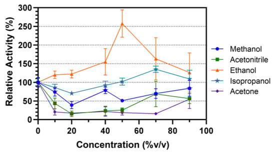 APA StyleSalas-Bruggink, D., Guzmán, H., Espina, G., & Blamey, J. M. (2024). Recombinant Expression and Characterization of a Novel Thermo-Alkaline Lipase with Increased Solvent Stability from the Antarctic Thermophilic Bacterium Geobacillus sp. ID17. International Journal of Molecular Sciences, 25(14), 7928. https://doi.org/10.3390/ijms25147928