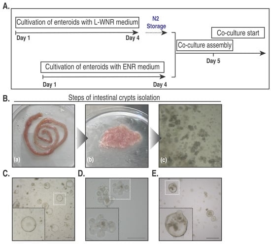 Hentschel V, Govindarajan D, Seufferlein T, Armacki M. An Adaptable Protocol to Generate a Murine Enteroid–Macrophage Co-Culture System. International Journal of Molecular Sciences. 2024; 25(14):7944. https://doi.org/10.3390/ijms25147944