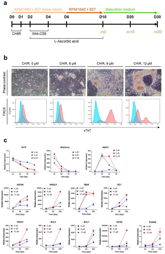 - Lian, X.; Hsiao, C.; Wilson, G.; Zhu, K.; Hazeltine, L.B.; Azarin, S.M.; Raval, K.K.; Zhang, J.; Kamp, T.J.; Palecek, S.P. Robust cardiomyocyte differentiation from human pluripotent stem cells via temporal modulation of canonical Wnt signaling. Proc. Natl. Acad. Sci. USA 2012, 109, E1848–E1857. [Google Scholar] [CrossRef] [PubMed]