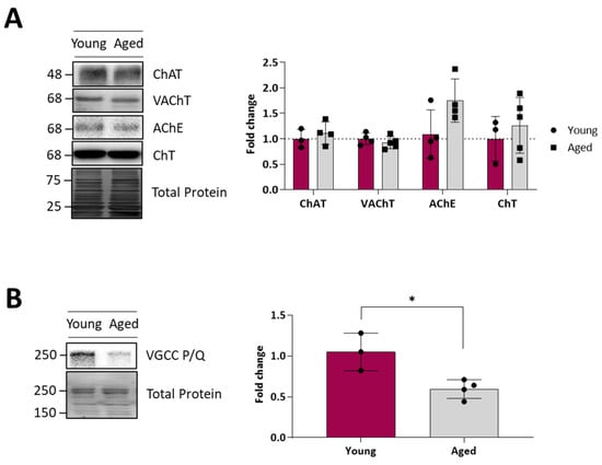 3.6. Presynaptic Acetylcholine Cycle Proteins and Calcium Channels