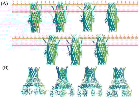 - Johnson, J.M.; Church, G.M. Alignment and Structure Prediction of Divergent Protein Families: Periplasmic and Outer Membrane Proteins of Bacterial Efflux Pumps. J. Mol. Biol. 1999, 287, 695–715. [Google Scholar] [CrossRef] [PubMed]