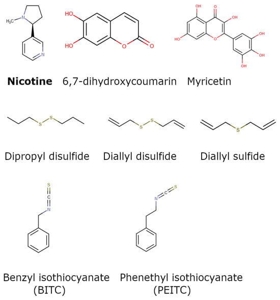 - Von Weymarn, L.B.; Chun, J.A.; Hollenberg, P.F. Effects of benzyl and phenethyl isothiocyanate on P450s 2A6 and 2A13: Potential for chemoprevention in smokers. Carcinogenesis 2006, 27, 782–790. [Google Scholar] [CrossRef] [PubMed]