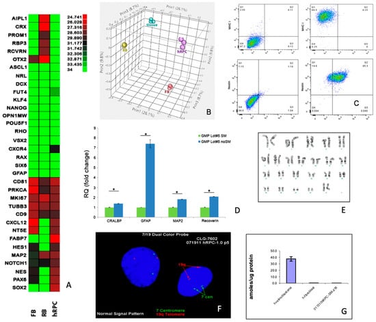 21]. Microarray analysis showed that the global transcriptome of cultured hRPCs clearly segregated from fetal retinal tissue (i.e., source material), autologous fibroblasts, and an allogeneic retinoblastoma cell line (