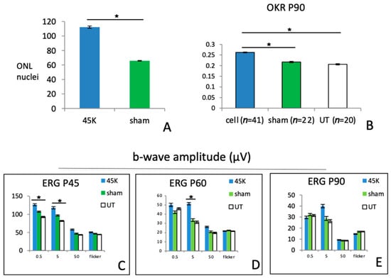 Figure 5E,F) and quantified as an increased number of nuclear profiles present in the outer nuclear layer (ONL) of hRPC-treated versus sham (
