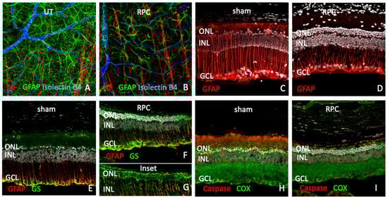 Figure 8D–G). Caspase, a marker of apoptosis, was diminished in RPC-treated retinas and elevated in shams (