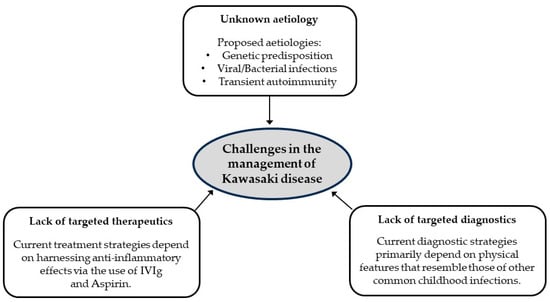 Although current research findings robustly show that the fundamental basis of KD is vascular inflammation, its aetiology, targeted diagnostic tools and effective therapeutics are yet to be discovered (Figure 2). Hence, the development of a sensitive and specific test to diagnose KD in its early stages or incomplete manifestation remains one of the key pursuits in this field.
