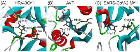 In the following paragraphs the main characteristics of HRV–3Cpro, AVP, and SARS-CoV-2 Mpro are discussed.