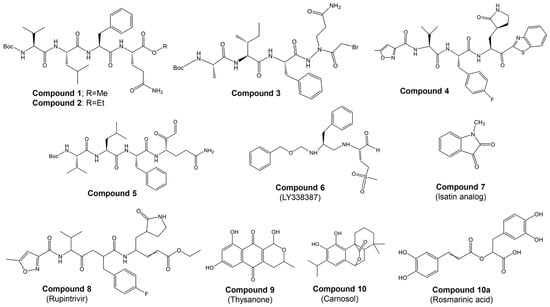 Despite its similarities with proteases from other (+)-ssRNA viruses such as HIV and HCV, which have well-established inhibitors, effective approved therapies targeting SARS-CoV-2’s Mpro are still lacking [67] (discussed further below).