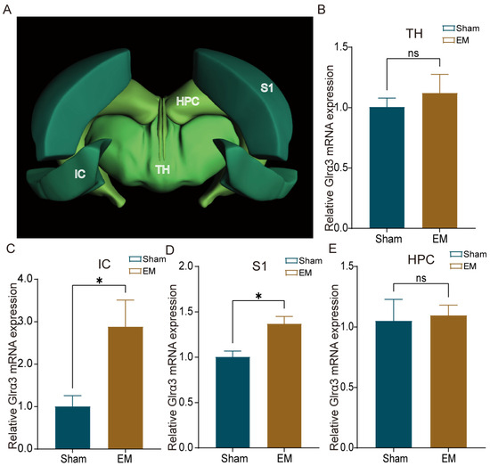 2.2. Upregulation of Glrα3 in the S1 and IC Brain Regions of Mice with Endometriosis