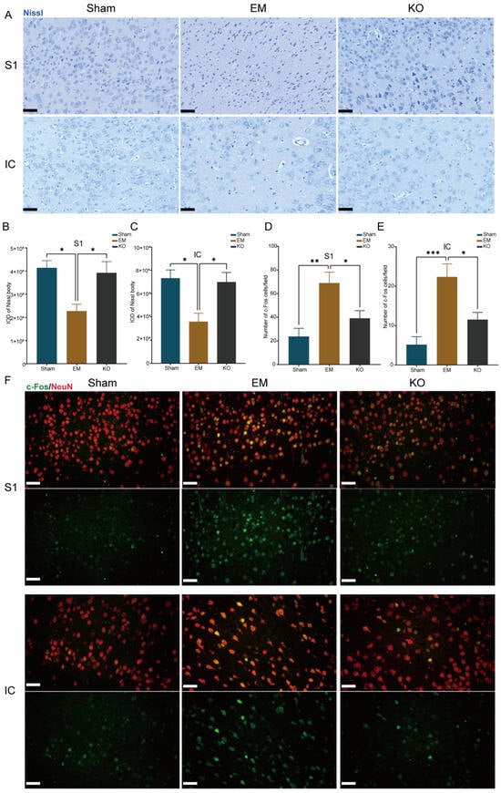 2.5. Inhibition of Glrα3 Alleviates Neuronal Alterations in the IC and S1 Regions