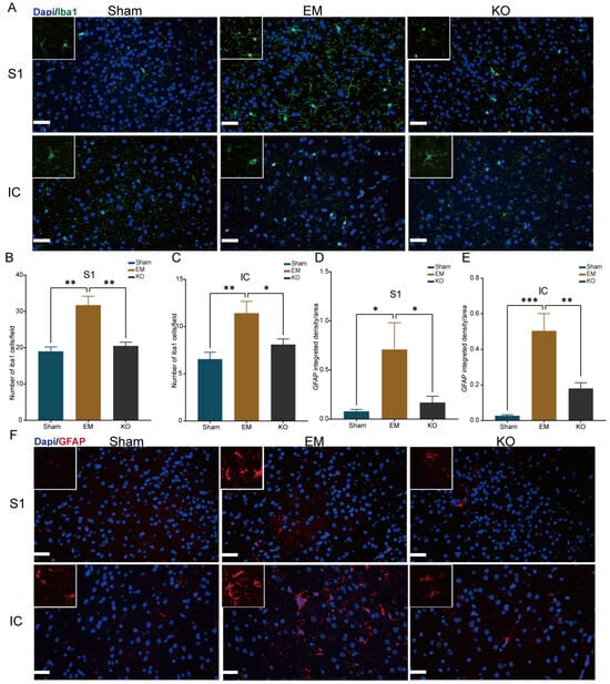 2.6. Inhibition of Glrα3 Reduces Activation of Glial Cells in the IC and S1 Regions