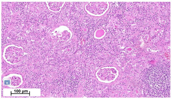 - Taghavi, M.; Mesquita, M.; David, C.; Geers, C.; Pozdzik, A.; Nortier, J. Clinical management of a granulomatous tubulointerstitial nephritis associated with a bilateral granulomatous anterior uveitis: A challenging case report and review of the literature. Clin. Nephrol. 2022, 98, 155–161. [Google Scholar] [CrossRef] [PubMed]