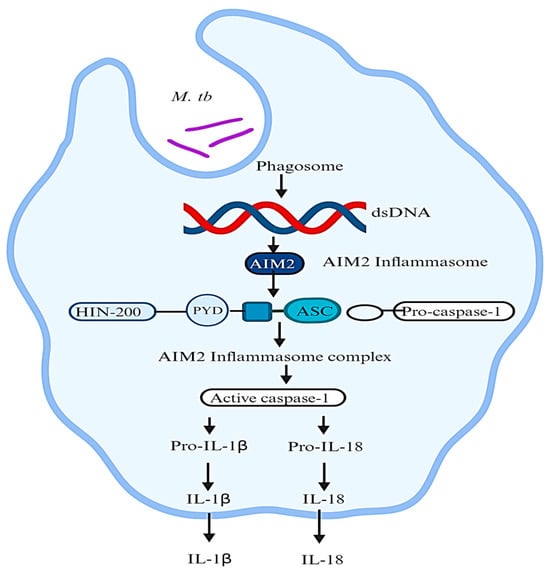 M. tb DNA by AIM2 initiates the activation of the AIM2 inflammasome, a multiprotein complex involved in triggering pyroptosis, a type of cell death that promotes inflammation and aids in clearing the infection caused by