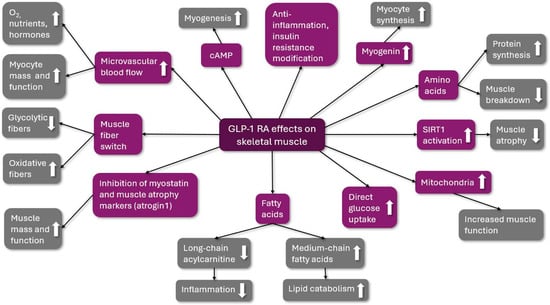 Several reports have demonstrated the molecular role of GLP-1 in skeletal muscle homeostasis and the therapeutic potential of GLP-1 RA in skeletal muscle atrophy [49].