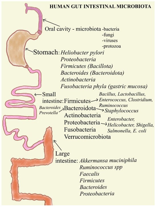- Anwar, H.; Iftikhar, A.; Muzaffar, H.; Almatroudi, A.; Allemailem, K.S.; Navaid, S.; Saleem, S.; Khurshid, M. Biodiversity of Gut Microbiota: Impact of Various Host and Environmental Factors. Biomed. Res. 2021, 2021, 5575245. [Google Scholar] [CrossRef] [PubMed]