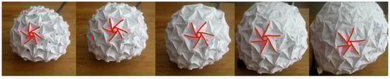 - Shumakov, K.; Shumakov, Y. Origami Charming Kusudama: Magic Spheres out of Paper; CreateSpace Independent Publishing Platform: North Charleston, SC, USA, 2015. [Google Scholar]