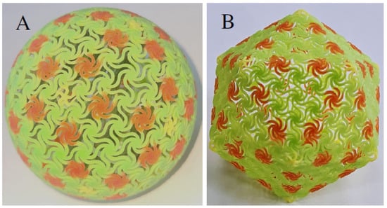 - Twarock, R.; Luque, A. Structural puzzles in virology solved with an overarching icosahedral design principle. Nat. Commun. 2019, 10, 4414. [Google Scholar] [CrossRef] [PubMed]