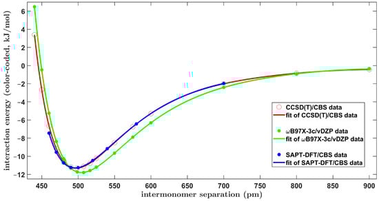 The curves were obtained by the least-squares fit of the interaction energy data to the functional form expressed by Equation (3):