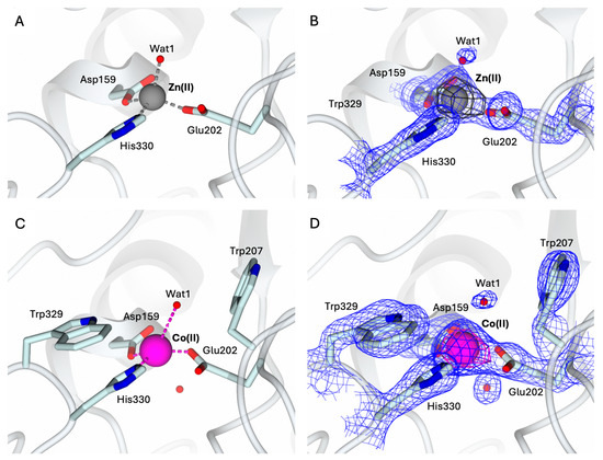 2.2. Structural Characterization of the Holo-States of hQC-2X with Zn(II) and Co(II) Metal Ions
