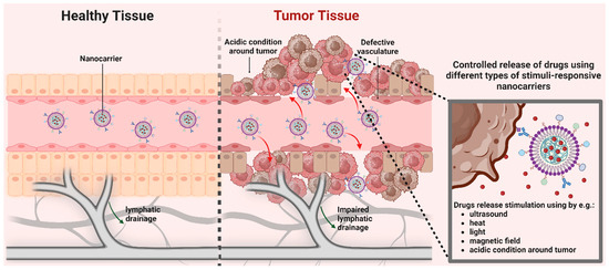 Solid tumours frequently exhibit an enhanced permeability and retention (EPR) effect, which is correlated with reduced lymphatic drainage, increased angiogenesis, and enhanced permeability of vessels [15]. This effect promotes the accumulation of nanoparticles within the tumour and significantly reduces off-target toxicity since normal tissues lack EPR [16], a process known as passive targeting.