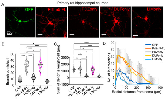 2.1. Impact of Expressing Isolated Pdlim5 Domains upon Dendrite Morphology