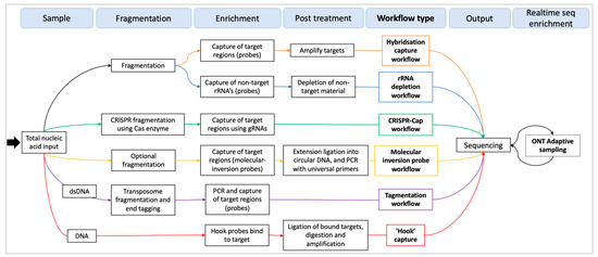 There are numerous approaches and diverse methods classified under the enrichment umbrella. Hybridisation capture, PCR/amplicon enrichment, and background depletion are all ways in which primers or probes can be applied to capture a target [31] (Table 1).