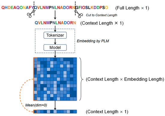 As shown in Figure 4, the initial protein sequence length is denoted as Full Length. A specified context sequence length, designated as Context Length, is then determined around the mutation site. Sequences with a Full Length shorter than the designated Context Length are excluded from analysis. The sequence is subsequently processed through a Tokenizer to generate corresponding tokens, which are then fed into the model to produce a feature matrix of dimensions [Context Length, Embedding Length]. By applying a Mean operation with dim set to 0, we obtain a feature vector of shape [Context Length,] that characterizes the mutation context structure. If the entire sequence, rather than a contextual subsequence, is used (i.e., Full Length equals Context Length), the feature matrix must be transposed, resulting in a feature vector of shape [Embedding Length,]. Differences in model architectures, such as those between ESM-2 and ProtBert, influence parameter counts, Embedding Length, and the model’s protein representation capabilities (Table 9). Additionally, during feature extraction, it is essential to obtain embeddings for both wild-type and mutant sequences, yielding two feature vectors of the same length.