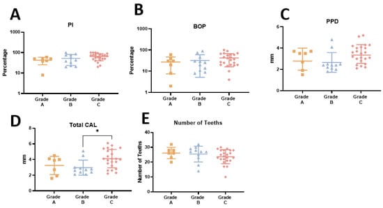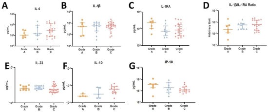 2.2. Salivary Cytokine Discriminates Periodontal Disease Stages but Not Grades