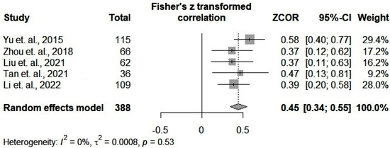 3.4. Meta-Correlation of Pearson Results
