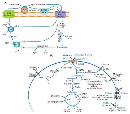 - Vázquez-Meza, H.; Vilchis-Landeros, M.M.; Vázquez-Carrada, M.; Uribe-Ramírez, D.; Matuz-Mares, D. Cellular Compartmentalization, Glutathione Transport and Its Relevance in Some Pathologies. Antioxidants 2023, 12, 834. [Google Scholar] [CrossRef] [PubMed]