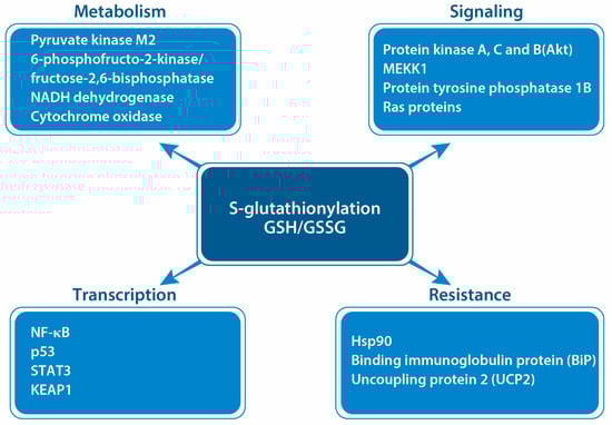 - Pal, D.; Rai, A.; Checker, R.; Patwardhan, R.S.; Singh, B.; Sharma, D.; Sandur, S.K. Role of Protein S-Glutathionylation in Cancer Progression and Development of Resistance to Anti-Cancer Drugs. Arch. Biochem. Biophys. 2021, 704, 108890. [Google Scholar] [CrossRef]