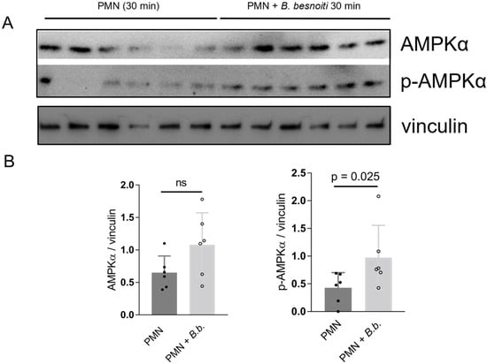 2.1. PMN Exposed to B. besnoiti Tachyzoites Induces AMPK Phosphorylation