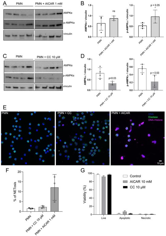 - Alba, G.; El Bekay, R.; Alvarez-Maqueda, M.; Chacón, P.; Vega, A.; Monteseirín, J.; Santa María, C.; Pintado, E.; Bedoya, F.J.; Bartrons, R.; et al. Stimulators of AMP-Activated Protein Kinase Inhibit the Respiratory Burst in Human Neutrophils. FEBS Lett. 2004, 573, 219–225. [Google Scholar] [CrossRef] [PubMed]
