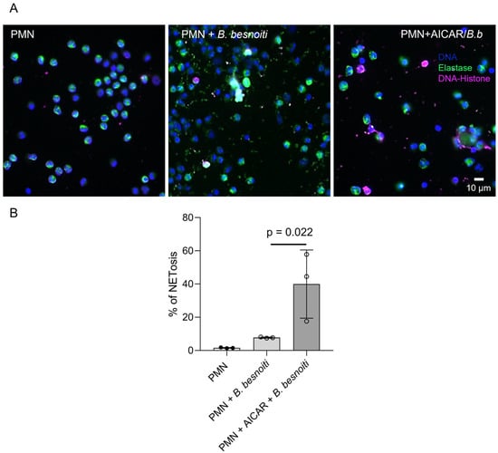 APA StyleConejeros, I., Velásquez, Z. D., Rojas-Barón, L., Espinosa, G., Hermosilla, C., & Taubert, A. (2024). The CAMKK/AMPK Pathway Contributes to Besnoitia besnoiti-Induced NETosis in Bovine Polymorphonuclear Neutrophils. International Journal of Molecular Sciences, 25(15), 8442. https://doi.org/10.3390/ijms25158442