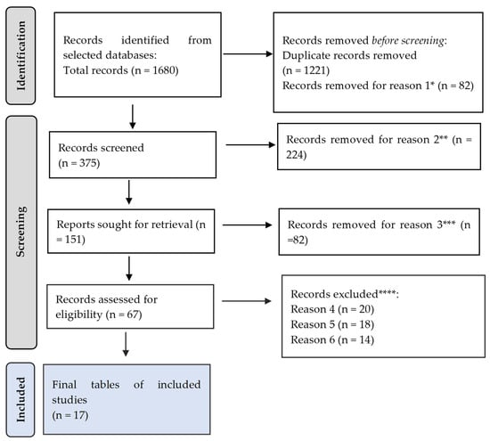 Following the process of screening and conducting a full-text review, a total of 17 papers were selected for the qualitative analysis (please see Supplementary Materials).