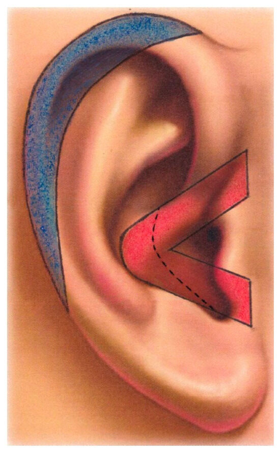 - Nicoletti, G.; Tresoldi, M.M.; Malovini, A.; Prigent, S.; Agozzino, M.; Faga, A. Correlation Between the Sites of Onset of Basal Cell Carcinoma and the Embryonic Fusion Planes in the Auricle. Clin. Med. Insights Oncol. 2018, 12, 1179554918817328. [Google Scholar] [CrossRef] [PubMed] [PubMed Central]