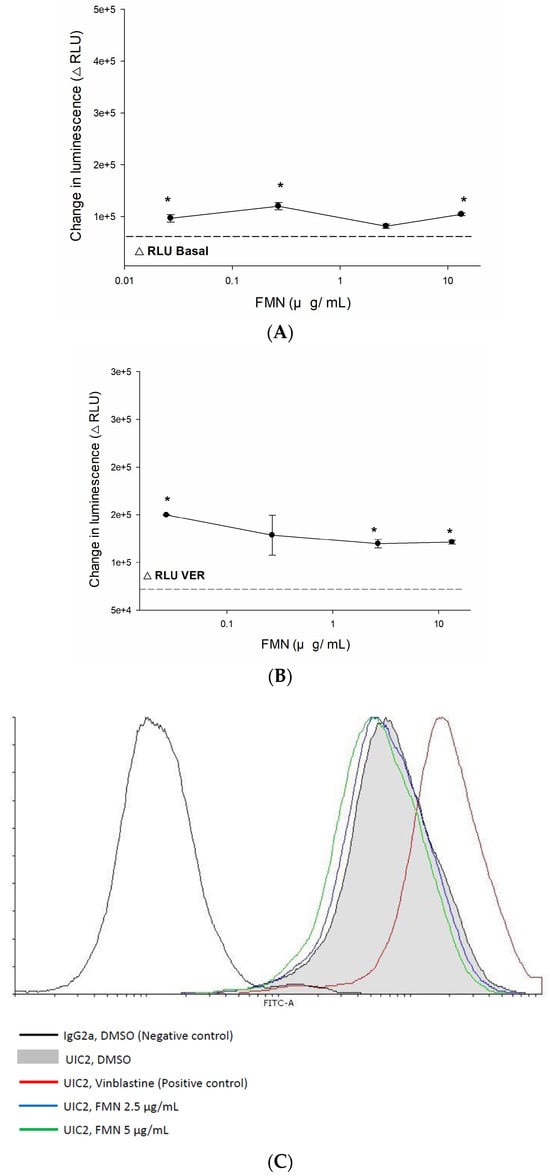 2.2. Formononetin Inhibits P-gp Efflux Function by Inducing ATPase Activity