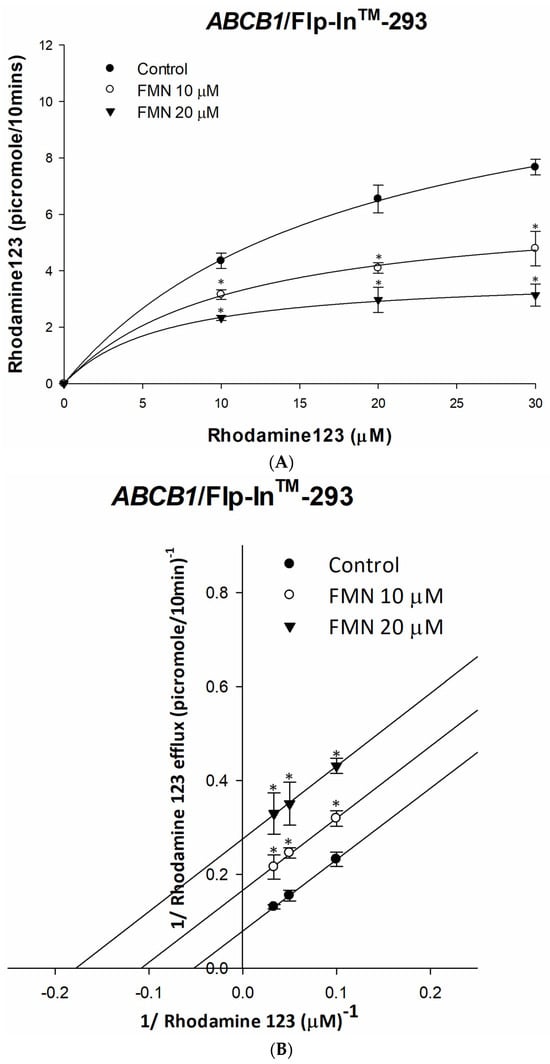 2.3. Inhibition Kinetics of the P-gp Substrate Rhodamine 123 and Doxorubicin