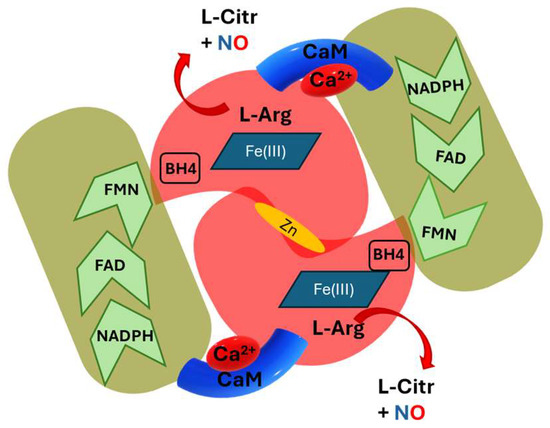 - Campbell, M.G.; Smith, B.C.; Potter, C.S.; Carragher, B.; Marletta, M.A. Molecular architecture of mammalian nitric oxide synthases. Proc. Natl. Acad. Sci. USA. 2014, 111, 3614–3623. [Google Scholar] [CrossRef]