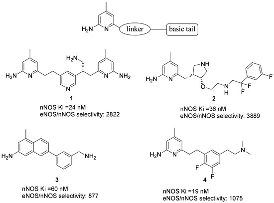 - Vasu, D.; Do, H.T.; Li, H.; Hardy, C.D.; Awasthi, A.; Poulos, T.L.; Silverman, R.B. Potent, Selective, and Membrane Permeable 2-Amino-4-Substituted Pyridine-Based Neuronal Nitric Oxide Synthase Inhibitors. J. Med. Chem. 2023, 66, 9934–9953. [Google Scholar] [CrossRef] [PubMed]