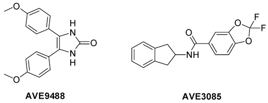 | AVE9488; AVE3085 | transcription enhancers | cardiac remodeling; endothelial dysfunction, hypertension | preclinical | [78,79,80] |