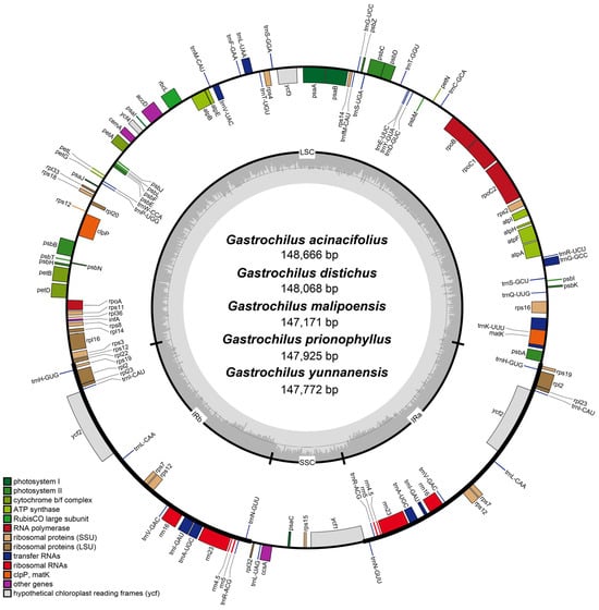 3.1. Plastome Evolution within Gastrochilus